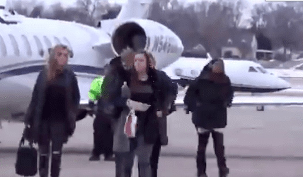It looks like Elizabeth Warren doesn’t want anyone to know she’s jetting around the country the way the super-rich do: in a private jet. The supporter of the New Green Deal — which would tear down skyscrapers and make us all ride bicycles or something — quickly dodged behind her staffer to stay out of the cameraman’s view. Too late, dear, we see you, you hypocritical jet-setting fraud!