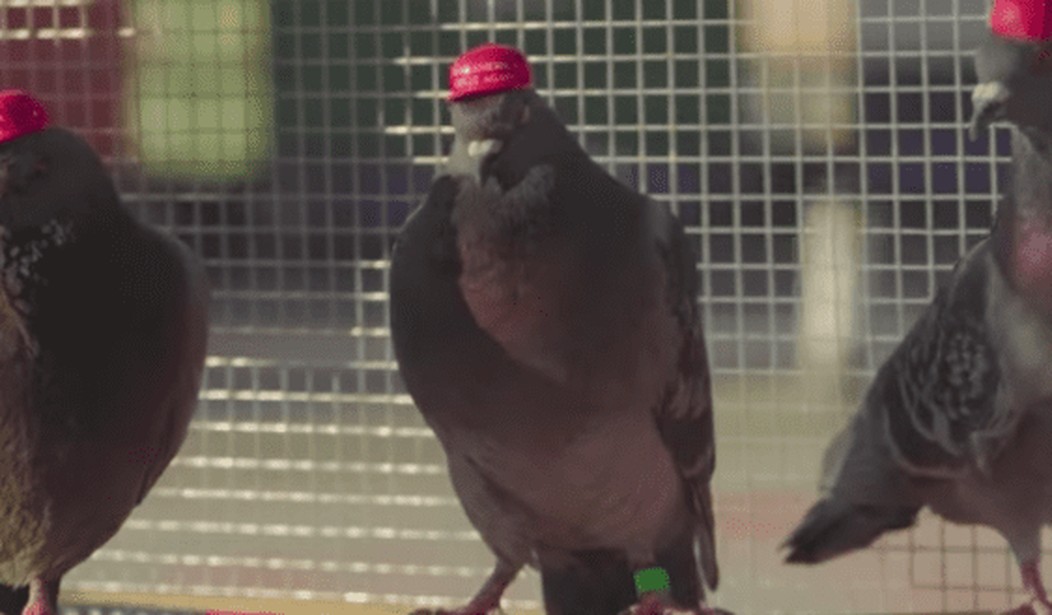 2020 is shaping up to be an epic election year, full of absurdity that even Marianne Williamson couldn’t dream up. While the Democrat candidates gear up to yap onstage in Las Vegas on Wednesday evening, they should watch where they walk near the venue because some pranksters have unleashed a flock of pigeons wearing MAGA hats (and one in a blonde Trump wig) to perch around the Democrat debate and trigger (or poop on) attendees as a form of protest.