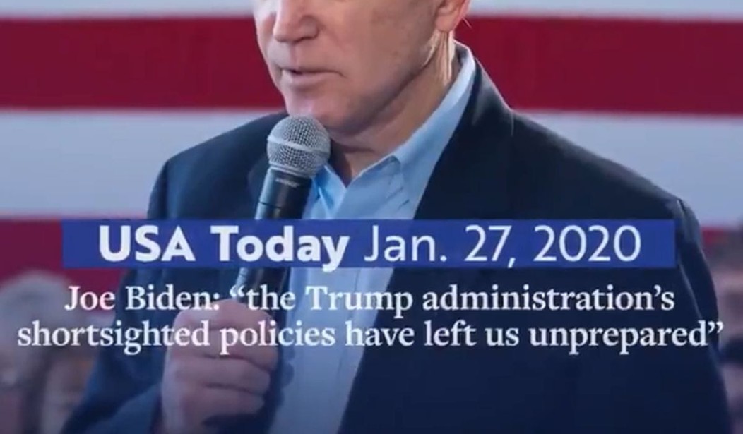 Forget for a moment the silliness of it. The ad claims Trump failed to “confront” China over their coronavirus response, failed to get a CDC team “on the ground” in China, and it’s Trump’s fault we have more cases and more deaths of the coronavirus than any other nation.