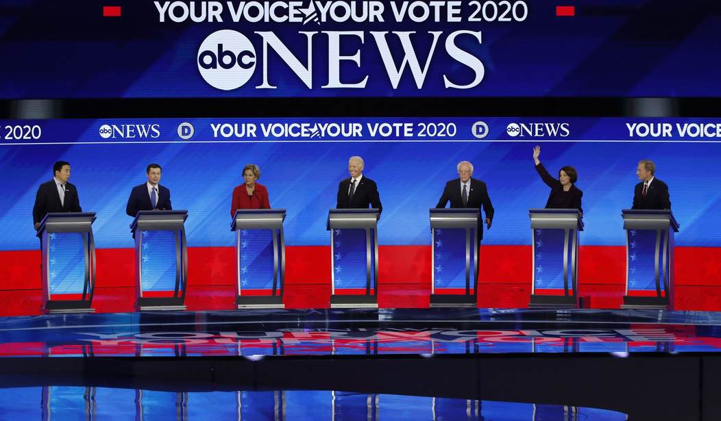 The candidates all went after President Donald Trump to one degree or another, repeated tired Democratic mantras against free speech in politics (Citizens United), originalist judges and justices, and the right to life. All of the candidates hesitated to raise their hands when asked if they were concerned about having a democratic socialist at the top of the ticket. Only Sen. Amy Klobuchar (D-Someplace Cold) slowly put her hand up. This winking at socialism defined the policy trajectory of the debate, with candidates pushing government solutions to nearly every problem.